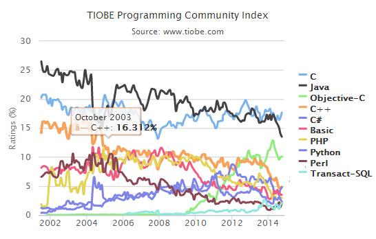 让我们来一起看看由TIOBE发布的10月份编程语言排行榜吧。在上个月的排行中,我们了解到Java、C++份额下滑至历史低点,但是前三甲排行没有明显的变化,依然是C、Java、Objective-C。