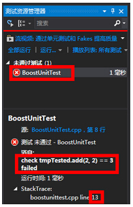 如果我们将“BoostUnitTest.cpp”中的第13行改成: