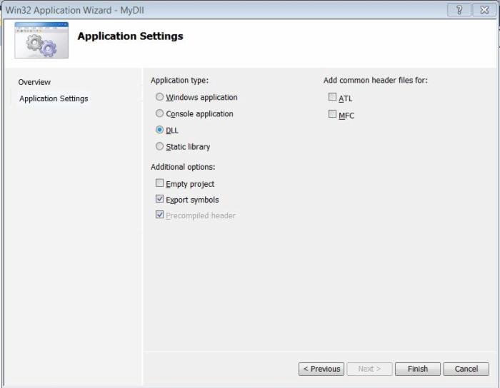 4.在MyApp解决方案里面新建一个win32 dll带导出符号项目名为MyDll,编译生成MyDll.dll。