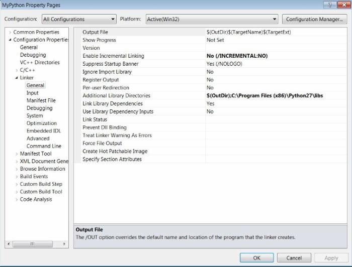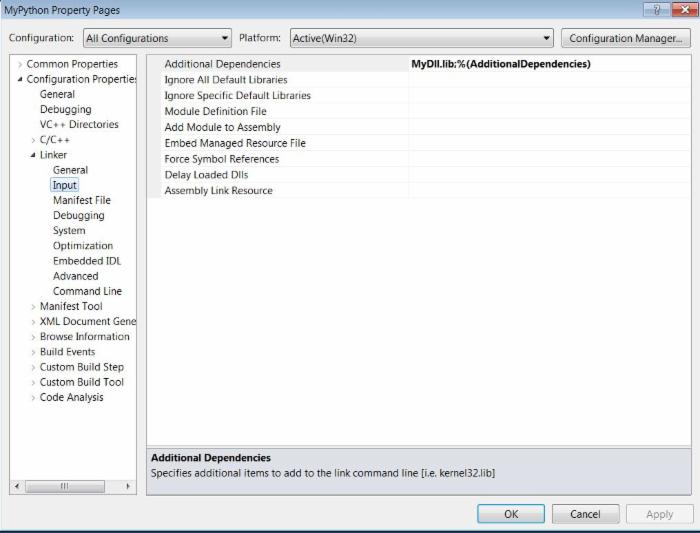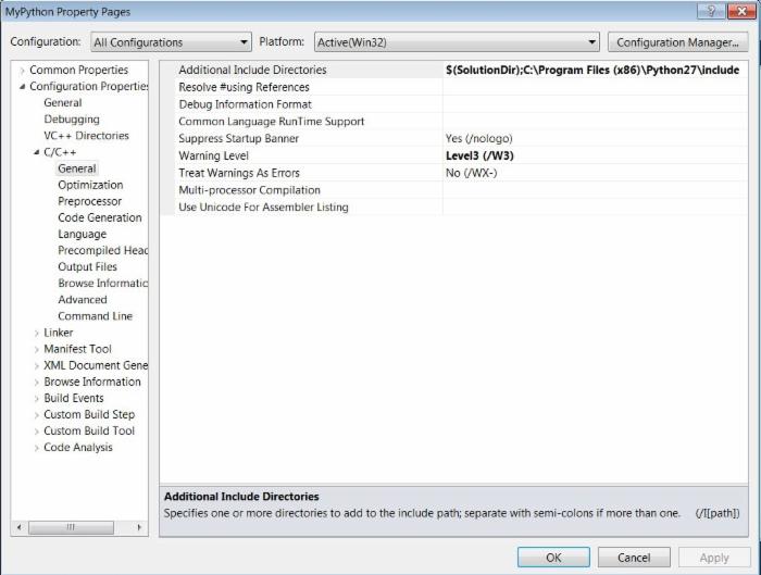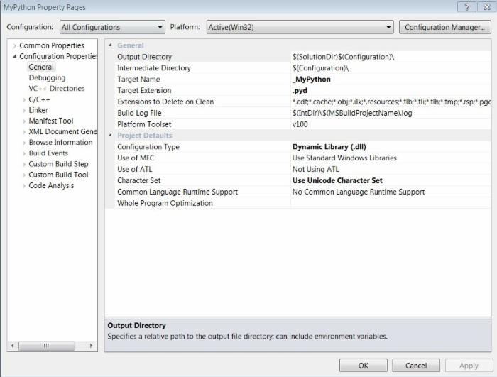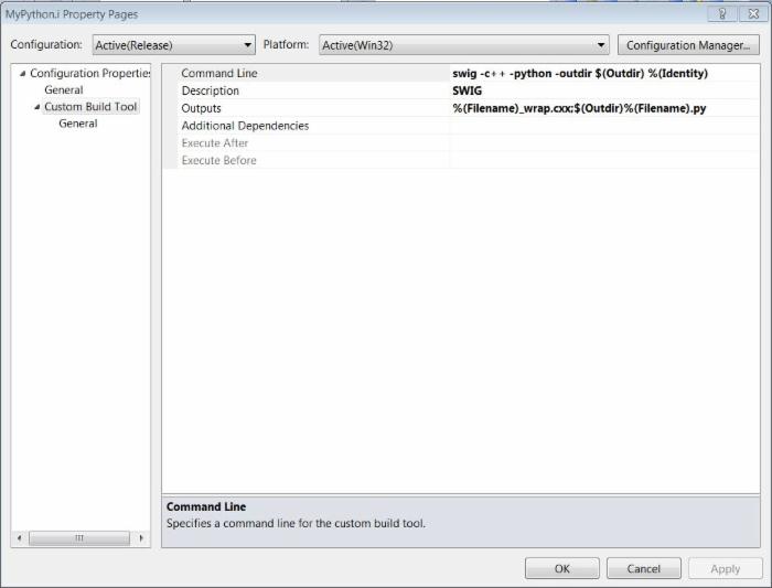 10.编译MyPython.i生成MyPython.py和MyPython_wrap.cxx,把MyPython_wrap.cxx添加到工程MyPython,并设置工程如下,Build工程MyPython生成_MyPython.pyd.
