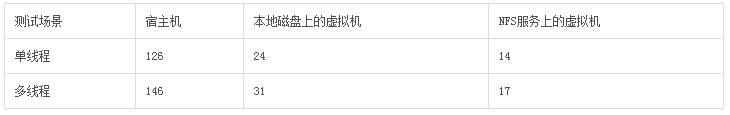 从如上测试结果可以看出,在没有进行任何性能调优的情况下,在数据库性能方面,宿主机 >> 本地磁盘上的虚拟机 >> NFS服务上的虚拟机。