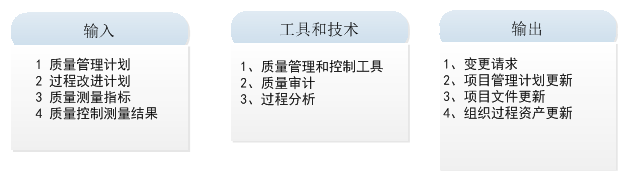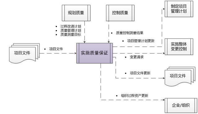 实施质量保证是审计质量要求和质量控制测量结果,确保采用合理的质量标准和操作性定义的过程。本过程的主要作用是,促进质量过程改进。