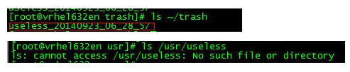 执行之后,useless 文件会从原目录中删除,被移动到$HOME/trash 下,并被重命名,如图 2.所示: