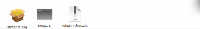 我们在tolua++文件夹下找到tolua++.Mac.zip文件,并解压它得到一个tolua++的工具,如图: