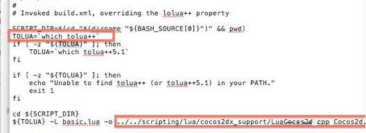 解压出工具后,我们在配置tolua++的路径,用Xcode打开build.sh文件,更改俩个地方: