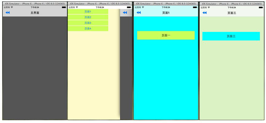 4.在导航页点击不同的按钮使用PPRevealSideViewController跳转到不同的controller