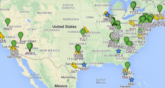 在2009年,亚马逊只经营着18个物流中心,且全部分布于二线州市,如华盛顿州、印第安纳州、肯塔基州、堪萨斯州和特拉华州等。但,亚马逊已拥有近100座巨型物流中心,并分散在各地,覆盖了几乎所有的主要人口聚集城市。