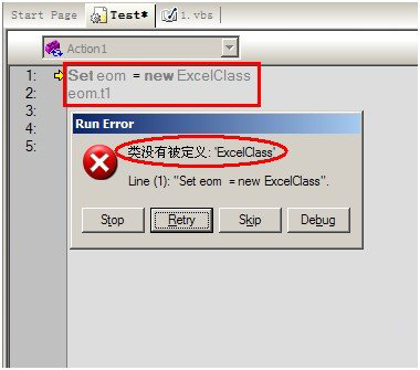 此时如果直接在QTP中进行创建类的话会直接报错: