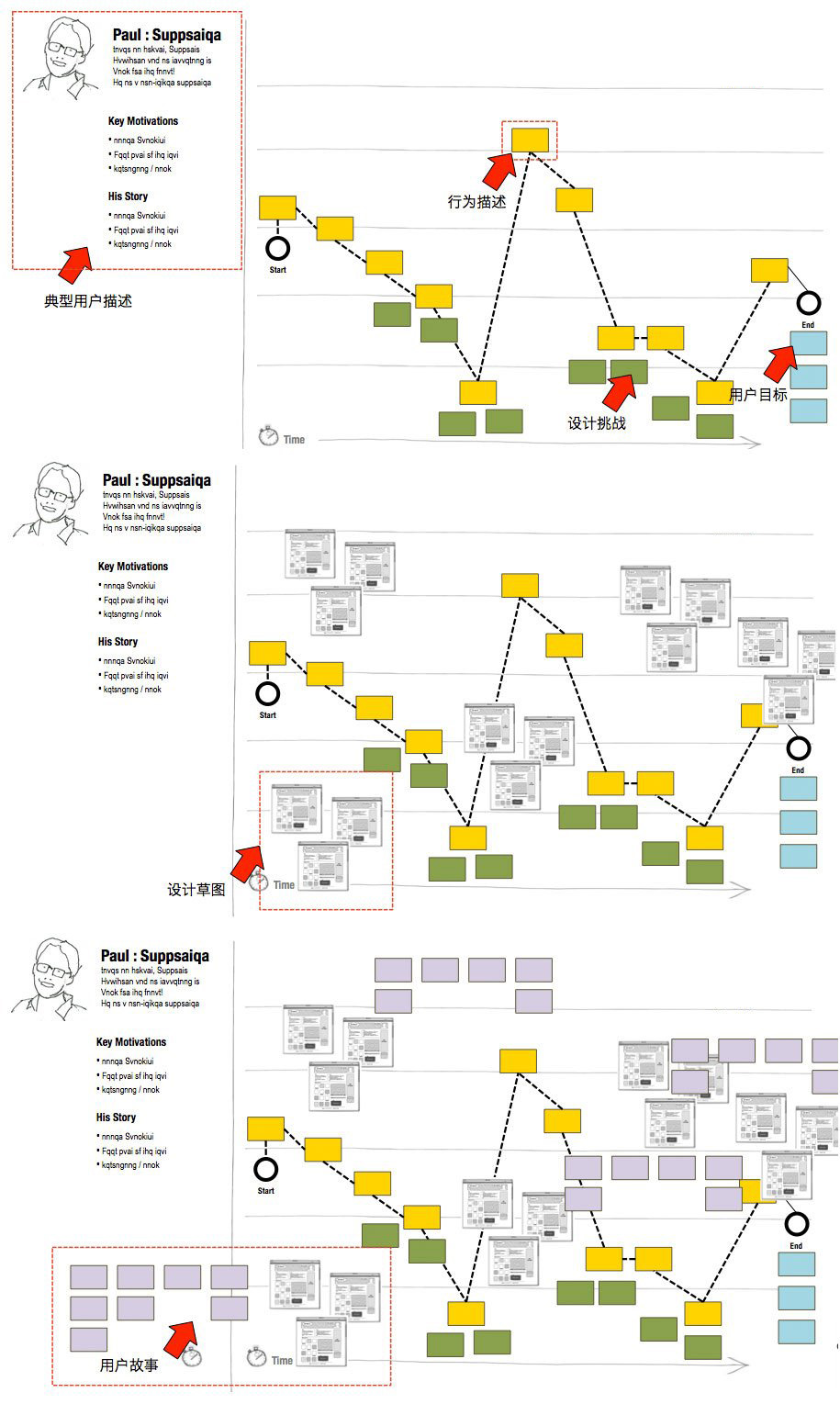 用贴条展示出客户现在完成用户目标过程中经历的步骤;