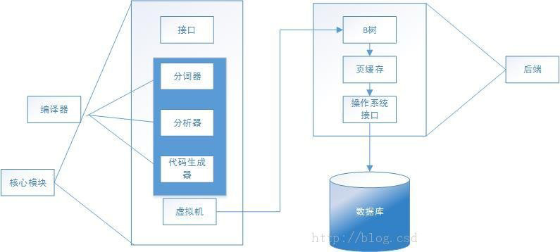 SQLite数据库采用模块化设计,由8个独立的模块构成,这些独立模块又构成了三个主要的子系统,模块将复杂的查询过程分解为细小的工作进行处理。