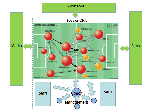 这是否意味着教练是多余的?当然不是,从一个系统的观点上看,教练对球队的组成、战术、训练计划、踢球风格等等产生着深远的影响。在比赛中,他能够换下一些队员,也能利用中场休息时间对上半场进行反思并布置战术。有趣的是,教练主要的任务是观察。正如德国的系统思想家Fritz B. Simon指出的那样,教练观察每一个球员自身的表现与球队的配合,以及和对手对抗的情况。此外,教练会根据观察结果提供专业的反馈。从某种程度上说,我们与Simon的观点是一致的。我们认为教练的主要作用是通过搭建提供积极反馈的回环,创建正确的意识。