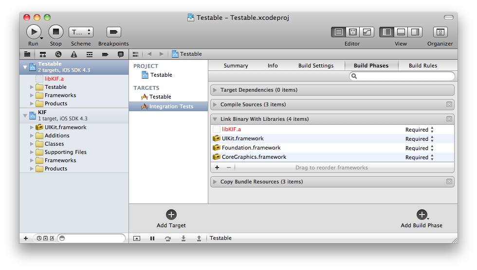 由于KIF测试用例是继承了OCUnit,并使用了标准的Xcode5测试框架,你可以使用持续集成来跑这个测试。当你在忙着别的事情的时候,拥有了一个能够像人的手指一样准点触控的机器人去测试你的应用程序。太棒了!