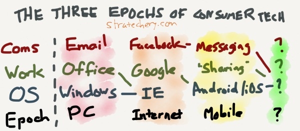 事实上,三大消费型计算机时代(个人电脑、互联网和移动)显著的特征之一是:它们相为互补,我们不能用其中一个取代一个。这也是为什么过去三十年中,当老公司遭遇新时期竞争之时,并没有被新型竞争对手碾压致死。新生的科技公司永远是科技世界的焦点,连成熟的巨头公司也能从这些新秀中获利不少。