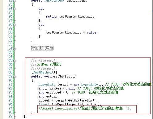 删除掉默认生成的类,然后创建一个LogonInfo类,然后我们在这个类中写一个很简单的获取大值的方法GetMax(int[] aryNum).方法的代码如下: