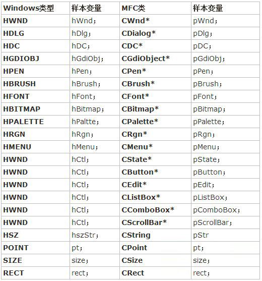 MFC、句柄、控件及结构的命名规范