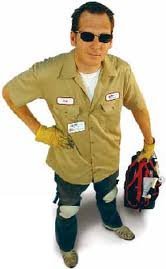 吉姆.斯蒂克利打扮成灭虫工人的样子
