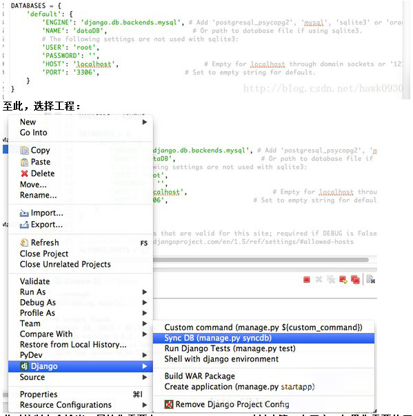 6.我使用Eclipse开发Django,新建一个Django工程,使用MySQL数据库: