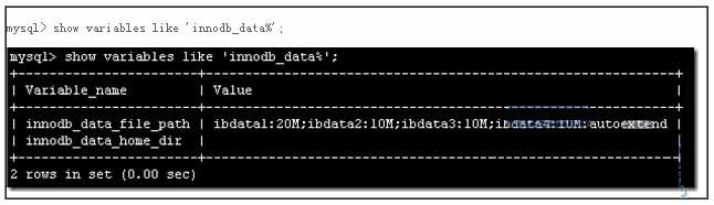 如果用 autoextend 选项描述后一个数据文件,当 InnoDB 用尽所有表自由空间后将会自动扩充后一个数据文件,每次增量为 8 MB。示例: