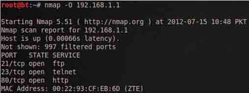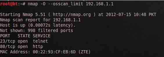 上面的例子清楚地表明,Nmap的首次发现开放的端口,然后发送数据包发现远程操作系统。操作系统检测参数是O(大写O)