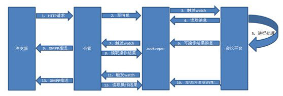 3、会议平台watch到zookeeper中该节点数据变化便从中把这条消息取出,并进行处理。注意:异步消息(我们应用大部分是异步消息)