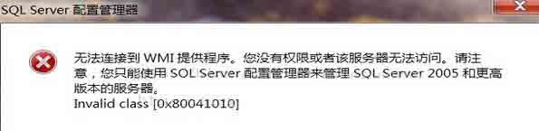 在打开数据库的时候,连接不上。一看错误知道肯定是SQL Server的服务没开启,所以自然而然的去SQL Server配置管理中去打开,但是打开配置管理器的时候出现了下面的错误: