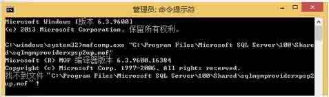 3.在doc命令中输入:mofcomp.exe "C:Program FilesMicrosoft SQL Server90Sharedsqlmgmproviderxpsp2up.mof"