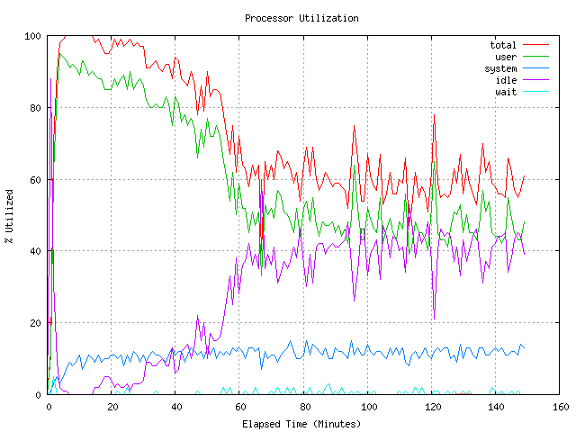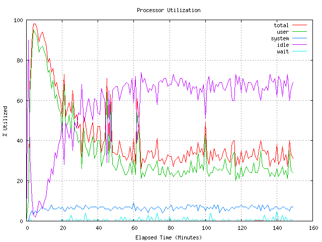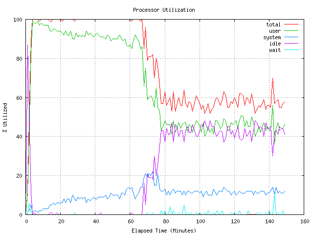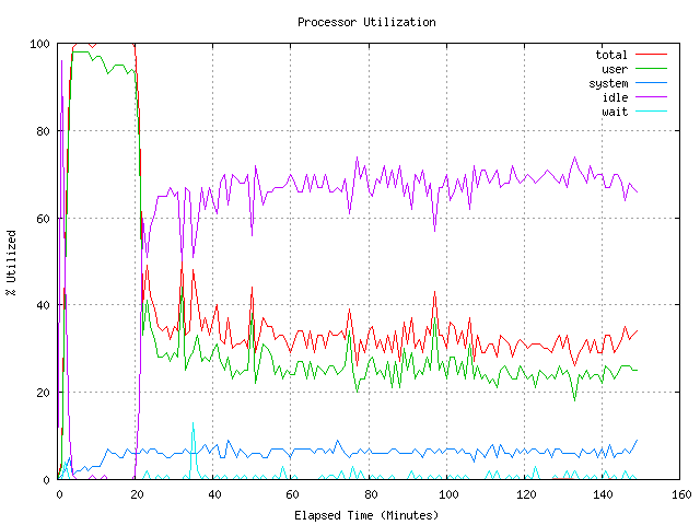 对于性能测试环境,重启之后的进行第一次并发测试,前期负载同样会很高,如下图: