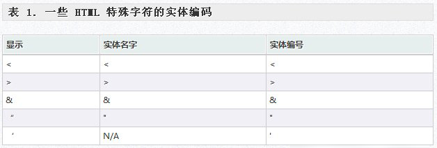 从上文列举的 XSS 恶意输入可以看到,这些输入中包含了一些特殊的 HTML 字符如 "<"、">"。当传送到客户端浏览器显示时,浏览器会解释执行这些 HTML 或JavaScript 代码而不是直接显示这些字符串。< > & “ 等字符在HTML语言中有特殊含义,对于用户输入的特殊字符,如何直接显示在网页中而不是被浏览器当作特殊字符进行解析?