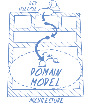 图4以图形方式显示了这三种应保留的模型的角色。简单地说,“架构”表现了系统结构,“领域模型”表现了问题领域中的关键概念,而“关键用例”则为系统的使用方式提供了示例。