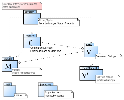 像“MVC”(模型-视图-控制器)这样的架构模式也可以作为一个全局架构。图5是某个架构的包图的示例,很显然它是基于某种MVC架构设计的。