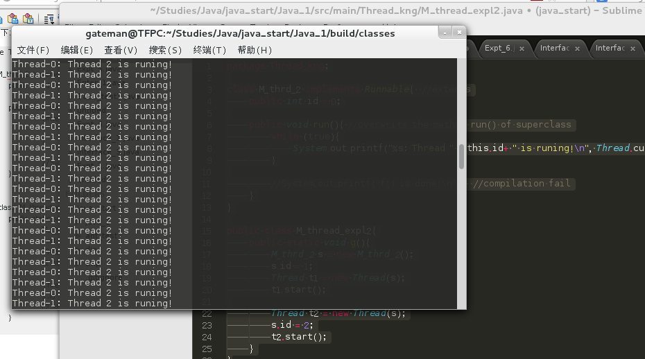 2. Thread(object ob) 是1个属于类Thread的构造方法, 其中的对象ob 必须实现Runnable 接口.