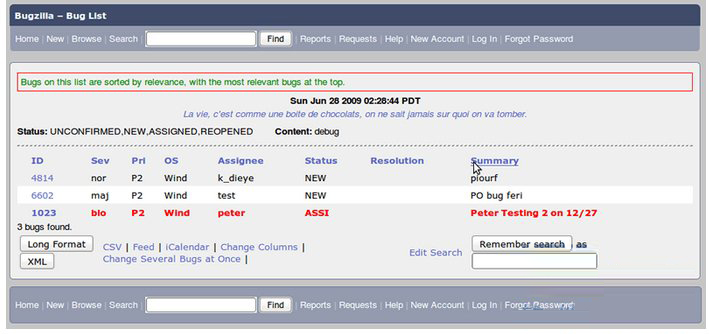 Bugzilla是一个臭虫的数据库。它让用户报告软件的臭虫而且把它们转给合适的开发者。开发者能使用bugzilla保持一个要做的事情的优先表,还有时间表和跟踪相关性。不是所有的"bugs"都是臭虫。一些数据库中的内容是作为增强的请求(RFE)。一个RFE是一个严重级别字段被设为"enhancement"的"臭虫".人们常说"bug",实际上意思是Bugzilla中的记录,所以RFEs经常被称作bug。根据客户的加强的请求来安排你的工作,Bugzilla会帮助你跟踪它们而且允许其它人看到你会作些什么。如果其它人看到了你的计划,他们会避免重复你的工作而且可能帮助你解决或反馈给你。