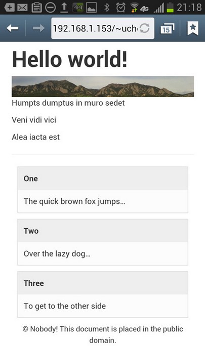 当然,清单 2 中的 HTML 现在需要 清单 3 中的特定于站点的 CSS 的一个附加链接。在 样例代码 中,包含 main.css 链接的已更新的 HTML 位于 main.html 文件中。图 3 显示了结果页面,其中的 main.css 更为美观: