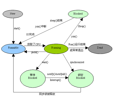 首先来看一张图,下面这张图很清晰的说明了线程的状态与Thread中的各个方法之间的关系,很经典的!