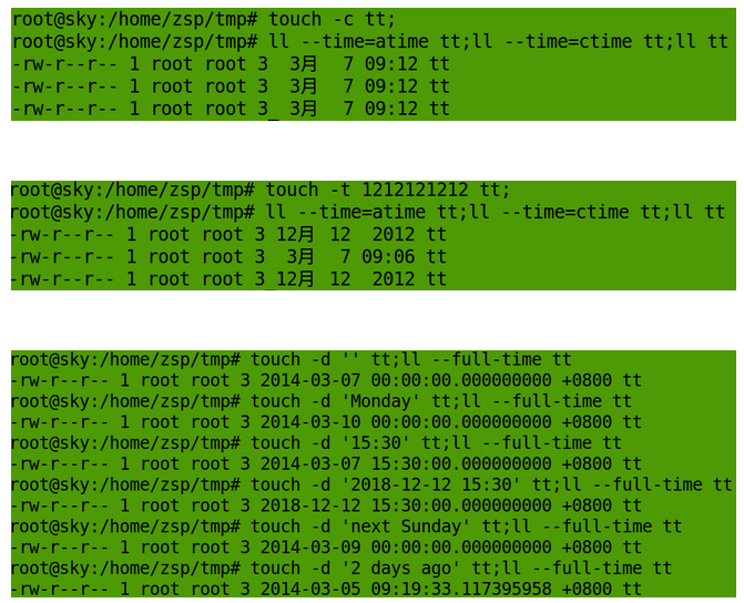 -c 修改文件的所有时间为现在的时间,若文件不存在则不建立任何文件。