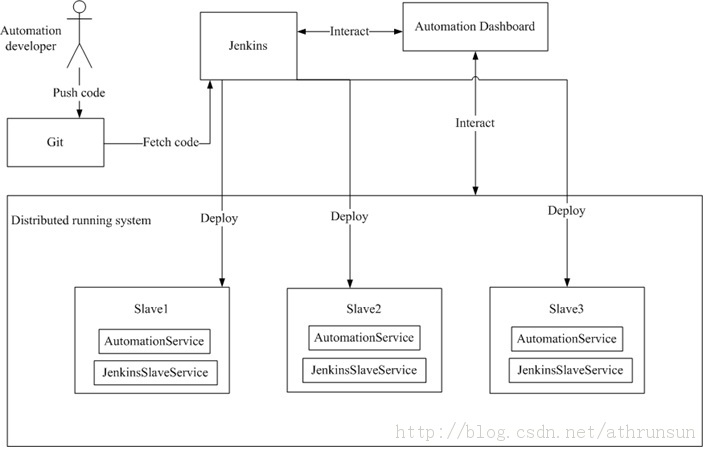 说完概念,接下来该说说具体实现了。我这里讲的是我认为适合我所测试的产品的实现,工具不止一种,方式不止一种。Jenkins可以用TeamCity或其它CI替换,git也可以是svn或tfs,AutomationDahsboard可以用.NET、SpringMVC、ROR等等实现,运行测试的slave可以是Windows/Linux/Mac(土豪!),总之选择一种适合你所测试的产品的实现。还有一点是自动化测试代码是用关键字驱动思想实现的,这是另外一个话题了,有时间另外写篇文。