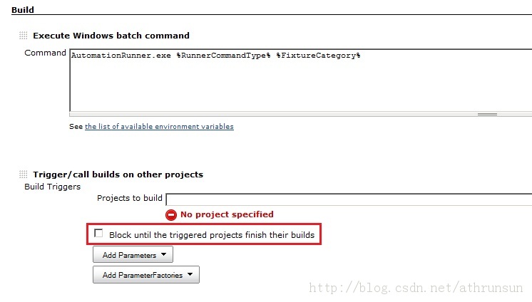 它有用的是这个“Block until the triggered projects finish their builds”选项,勾上的话Jenkins能在所有trigger的project完成build之后(而非仅仅trigger其它project的build,不等它们完成继续下一个build step)再继续下一个build step,做到真正的依次执行每个build step。