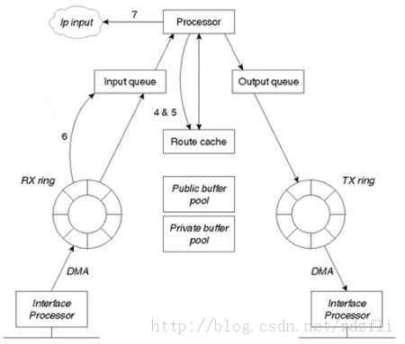目前的主流内核2.6X以后(前面的没了解)接收数据包的流程:数据包到达网络设备后,会触发硬中断,系统将设备加入轮询队列,然后关闭硬中断打开软中断。在软中断中,读取轮询队列中网络设备的数据包。这个在后面详细介绍。