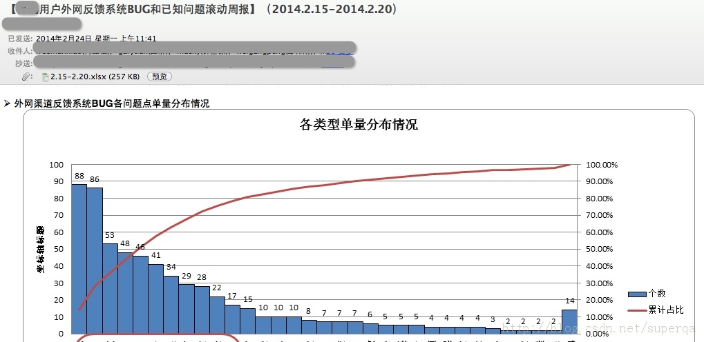 - 论坛信息的统计收集。我了解的另一个测试团队,他们还专门开发了一个自动收集外部反馈,以及过滤分析的系统来帮助他们及时的了解外包的问题反馈。