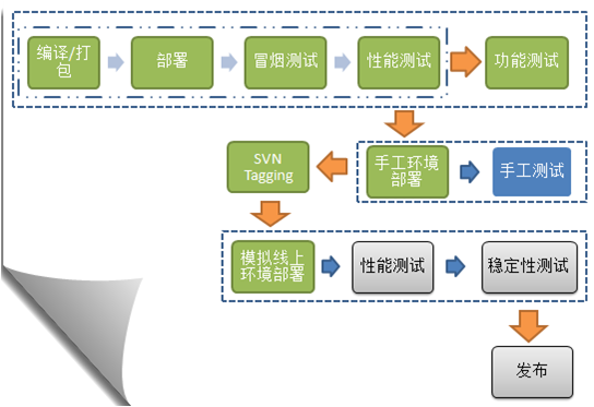 通过手工触发(QA人员控制),一键部署dist包到模拟线上环境,而后自动化进行性能测试和稳定性测试