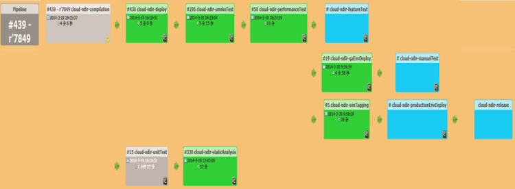 通过手工触发(QA人员控制),一键部署产品到手工测试环境并能在流水线上展示手工测试结果(通过简单的设置一个变量达到效果);同时可以选择触发功能测试,达到同步的执行