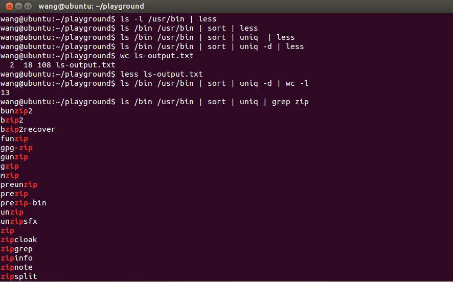 过滤器(filter), 是把多条命令合在一起构成一个管道.