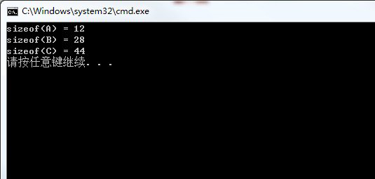 std::cout << "sizeof(C) = " << sizeof(C) << std::endl;