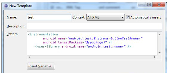 然后点击OK,New Template对话框关闭,继续点击OK。此时,新的XML模板已经建好了。