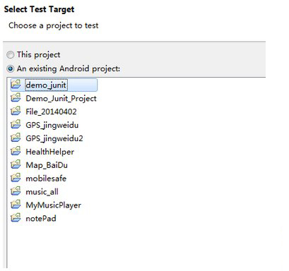 第二种情况时,首先是新建项目,选择Android Test Project: