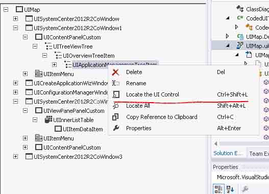 调整的另外一个目的是优化对控件的查找,右键点击控件的树形结构,你可以很容易的使用“Locate the UI Control"对控件进行定位,也是看看Coded UI目前还能不能找到这个控件。