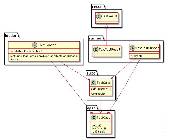 首先通过查看unittest的源码,来看一下这几个概念,以及他们之间的关系,他们是如何在一起工作的,其静态类图如下: