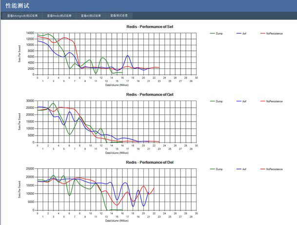 1) 对于没有持久化的方式,读写都在数据量达到800万的时候,性能下降几倍,此时正好是达到内存10G,Redis开始换出到磁盘的时候。并且从那以后再也没办法重新振作起来,性能比Mongodb还要差很多。