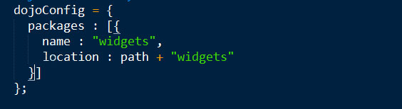 paths参数中逗号前后的值相当于dojoConfig定义packages对象时的name和location