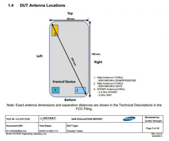 据介绍,三星SM-T2558机身尺寸为191.24×99.7×8.95mm,内置1.2GHz四核处理器(可能是高通出品的骁龙Snapdragon 400)、1.5GB RAM内存、8GB存储空间,支持TD-LTE/TD-SCDMA网络,7英寸触控屏,拥有200万像素前置镜头和800万像素主镜头,支持存储卡扩展,预装Android 4.3系统,重量245g。目前暂时还不清楚它的上市时间和售价。